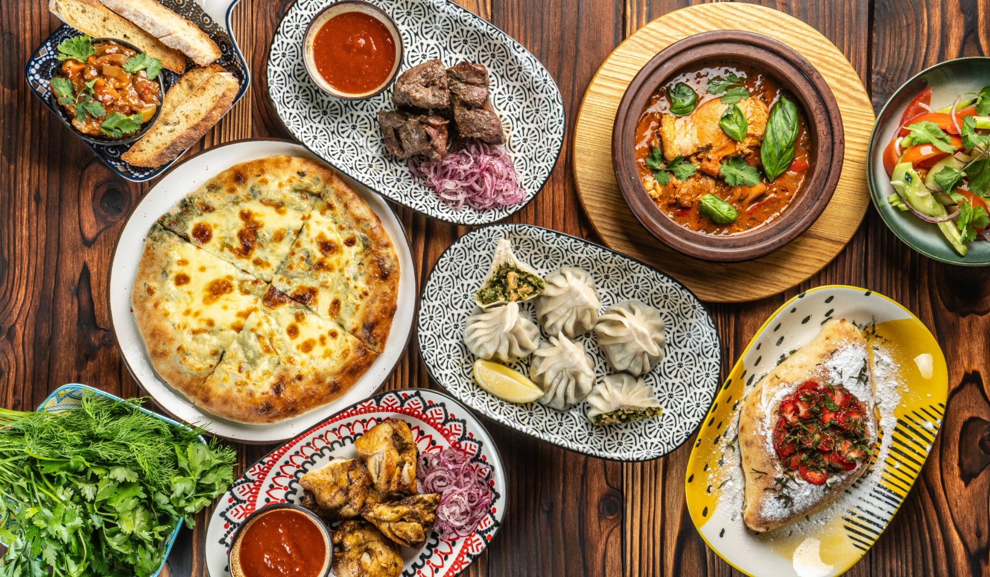 Soczyste szaszłyki, aromatyczne chaczapuri, treściwe zupy i ormiańskie specjały tworzą menu, które przeniesie Cię wprost w góry Armenii i Gruzji. Każdy posiłek to uczta dla zmysłów – sycąca, pełna kolorów i niezwykłych smaków.